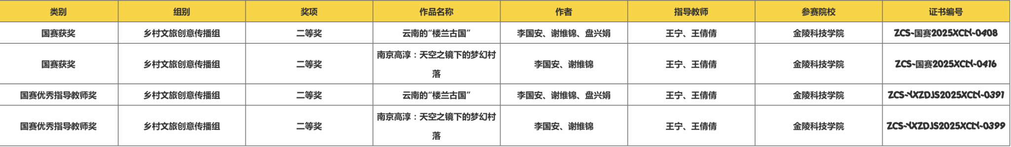 省赛获奖名单