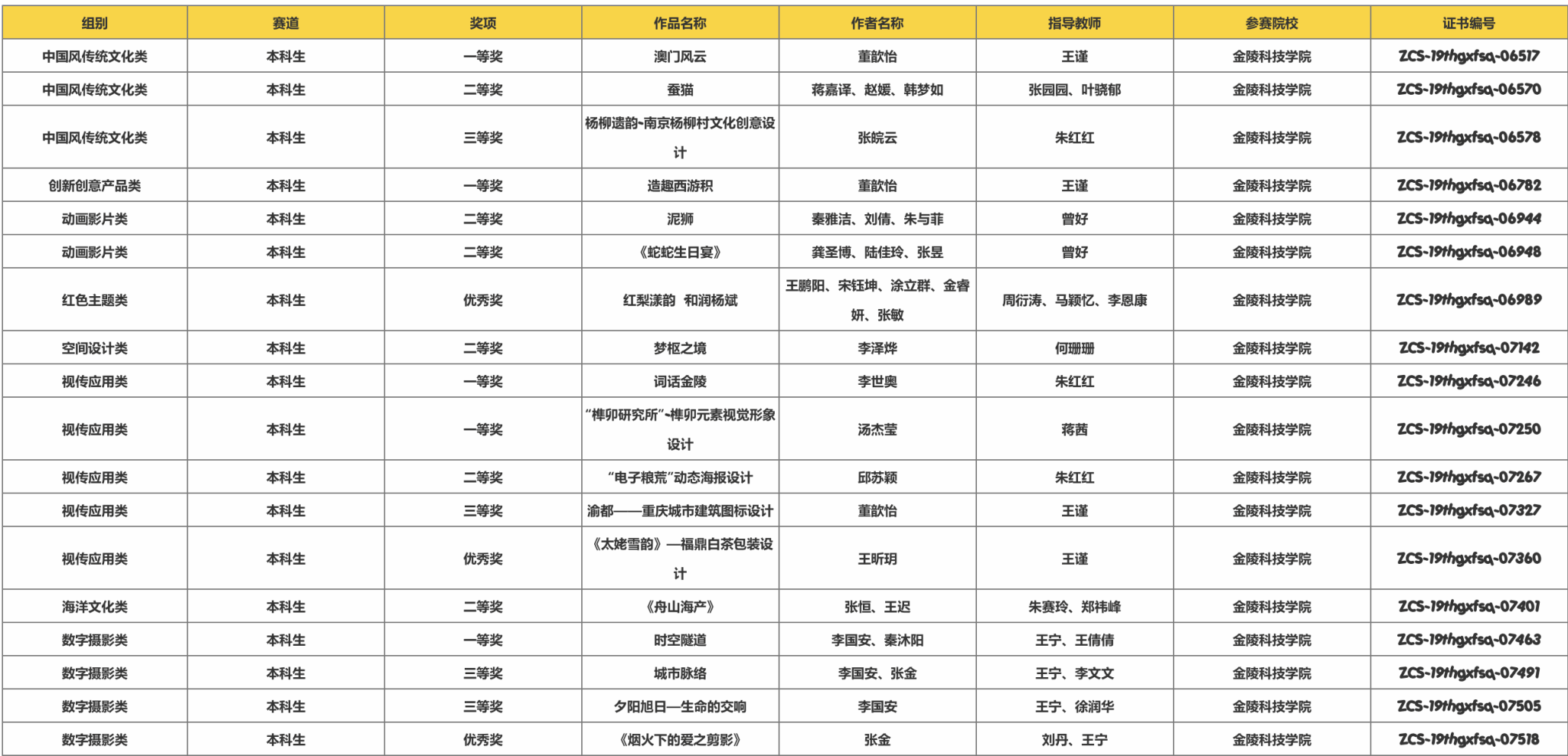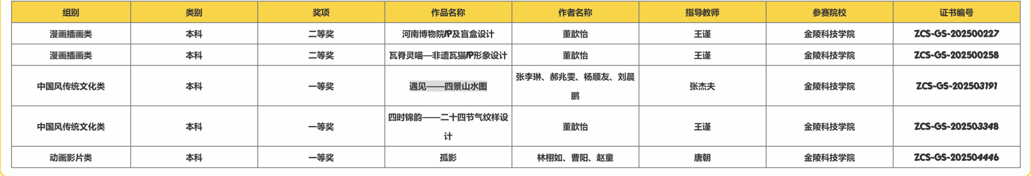 近日,由动漫学院组织的我校一院一品赛事——第十九届中国好创意暨全国数字艺术设计大赛获奖名单揭晓。我校师生与来自全国顶尖高校的众多优秀团队同台竞技,凭借出色的创新能力和扎实的专业功底,在本届大赛中大放异彩,共斩获国赛、省赛大奖27项。其中学生获国赛奖项9项,包括一等奖3项、二等奖4项、优秀奖2项;省赛奖项18项,包括一等奖5项、二等奖6项、三等奖4项、优秀奖3项。本校在此届大赛中获奖数量与质量均取得新突破。这些奖项涵盖了动画影片类、漫画插画类、中国风传统文化类、乡村旅游设计专项赛、数字声音景观专项赛等多个类别,充分体现了我校在人才培养和创新教育方面的卓越成效。
