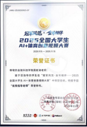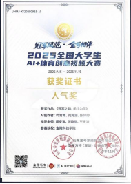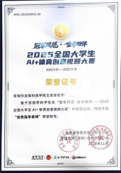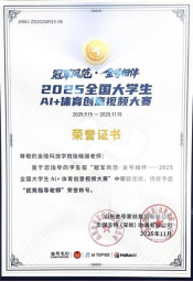 在激烈的角逐中,视觉传达设计系陈子璇作品《金号毛巾,我的运动搭档》(指导老师:张晓丽)荣获三等奖(获得奖金2000元、AI会员、金号产品礼包等)。戏剧与影视专业研究生代青青、刘海源、陈婷婷团队创作的《冠军之路、毛巾为伴》(指导老师:周安涛、张晓丽、王贤波)荣获人气奖,四位指导老师均获得“优秀指导老师”荣誉称号。本届大赛由山东金号家纺集团有限公司主办,AITOP100平台、华强方特(深圳)动漫有限公司承办,国家体育总局训练局支持。大赛以“AI+体育”为核心主题,设置“冠军之路,金号守护”专业运动场景等创作方向,激发AI在体育领域的应用潜能,发掘青年群体的创意与创新能力,院校赛道共颁出一等奖1项,二等奖2项,三等奖3项,人气奖多项。