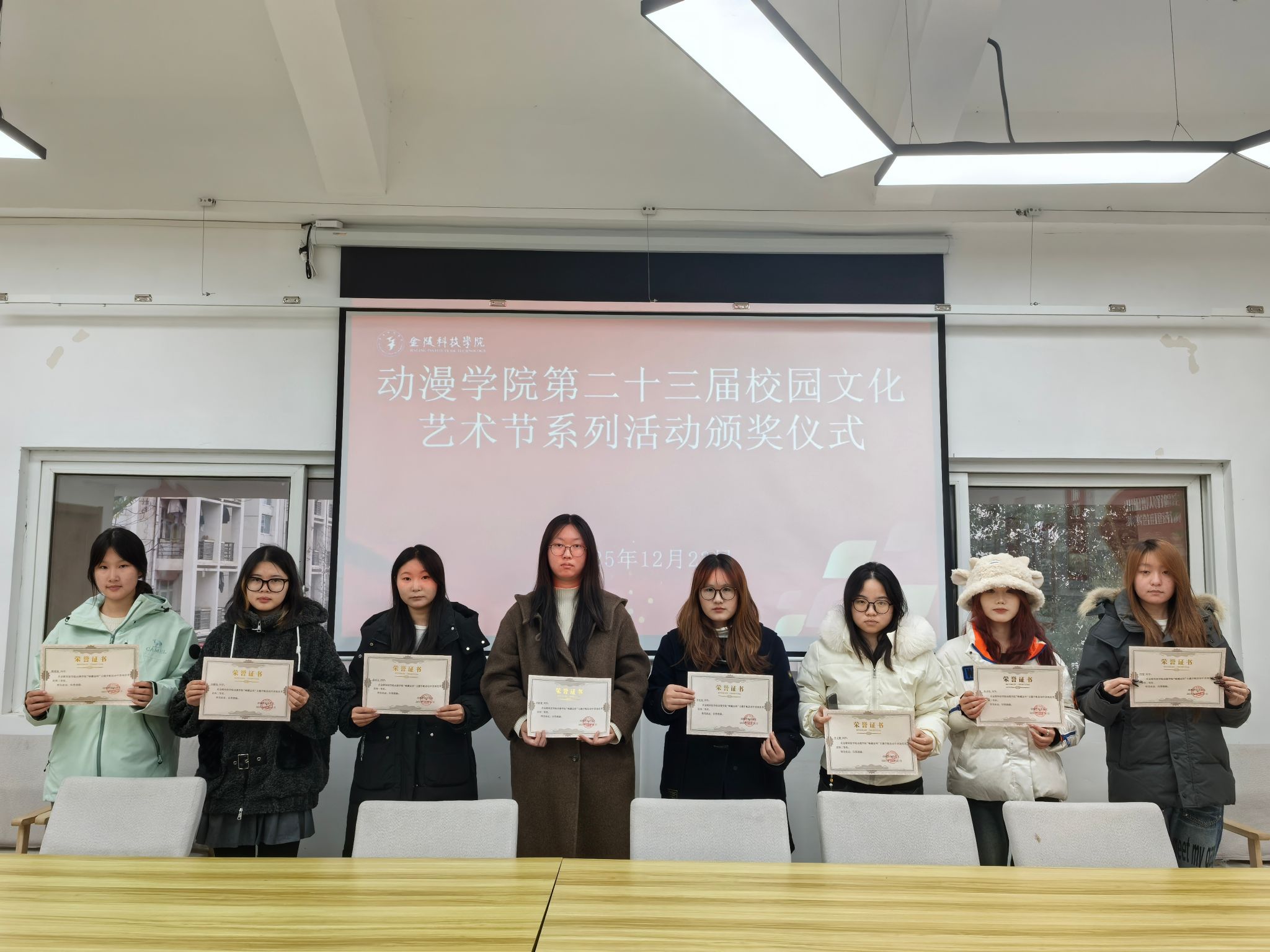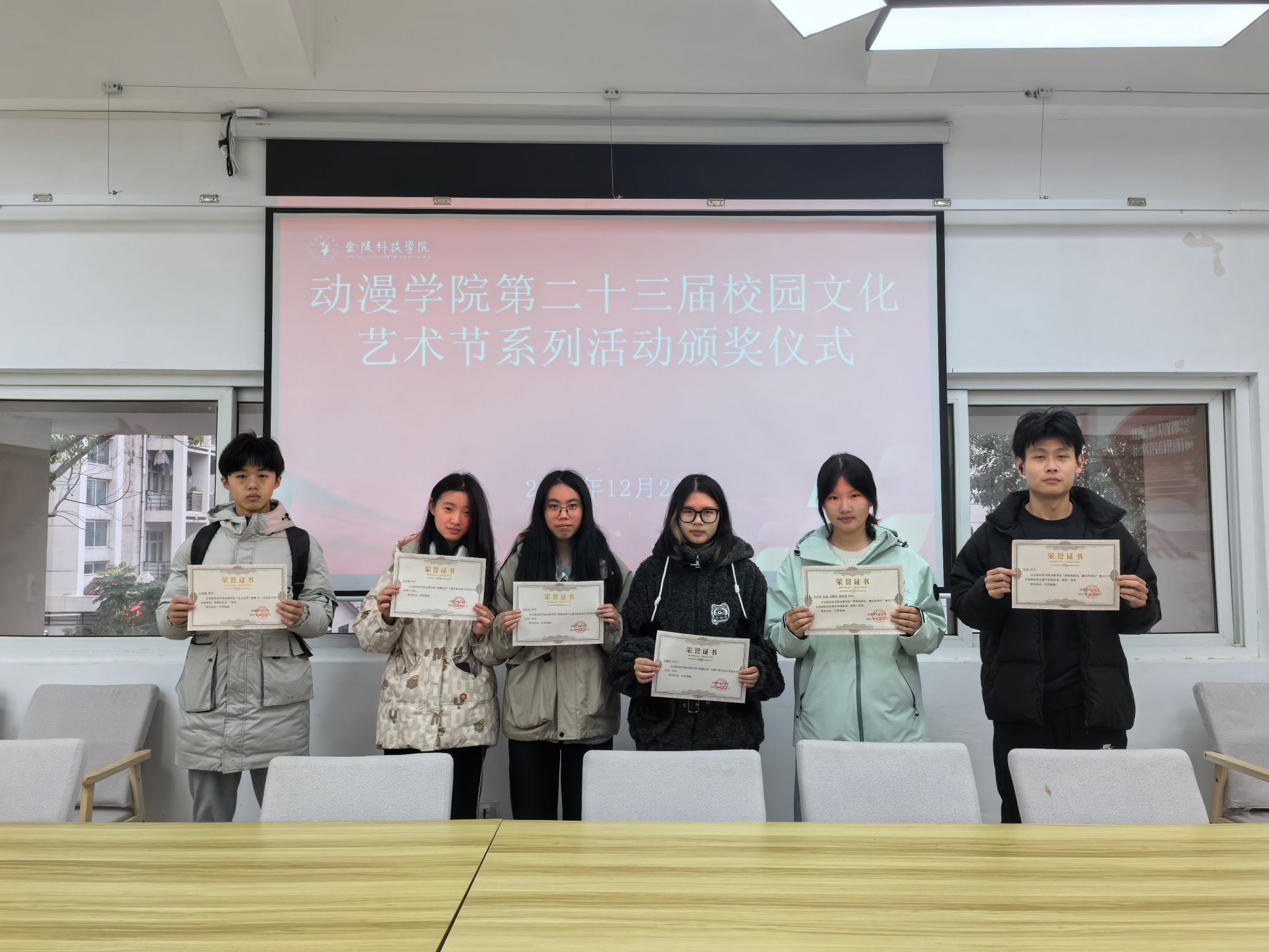 为表彰在第二十三届校园文化艺术节中表现优异的学生,动漫学院于12月23日在南区01栋“一站式”学生社区举办了颁奖仪式,为部分获奖学生颁发了荣誉证书。
